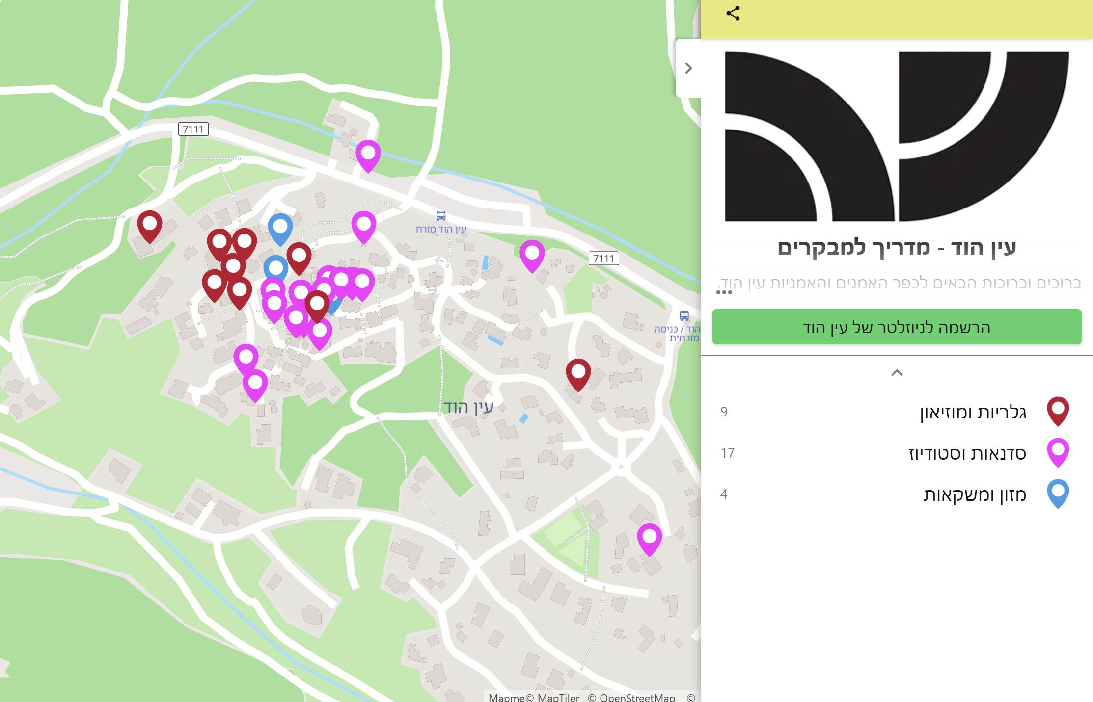 הקליקו על המדריך הדיגיטלי מהטלפון הנייד להכרות עם מוקדי העניין בביקור הבא שלכם בכפר האמנים עין הוד. ניתן להתחבר גם מהמחשב לתכנון ביקור כיפי ומוצלח.