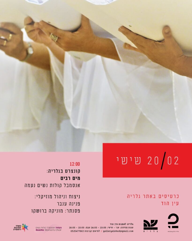 הקונצרט "מים רבים" יתקיים ביום שישי 20.26 בשעה 12:00.